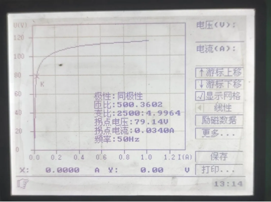 二是可以判別電流互感器是否發生匝間短路。拐點電壓位置的電流互感器鐵芯進入飽滿狀態,此刻勵磁電流簡直悉數損耗在鐵芯發熱上,當電流互感器二次繞組匝間短路時,在電流互感器伏安特性上表現為拐點電壓U有明顯的下降,據此可以判別電流互感器二次繞組反常。