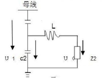 電容式的全稱為電容分壓式電壓互感器,工作原理如圖1。在被測二次回路與大地間接有電容組,電容組由C1和C2組成,其中C2兩端并接電壓互感器二次負荷Z2,L為補償電抗器,當電壓互感器空載運行時U2=U0=C1&TImes;U1/(C1+C2)=ηTVU1。電壓U2與其一次電壓U1大小成正比,相位相同。當電壓互感器帶負荷Z2時,圖2為等值電路圖,其中U0為空載電壓,jwL為補償電抗器的阻抗,Z0為電壓互感器的內(nèi)阻抗Z0=1/jw(C1+C2),當jwL=Z0,即1/w(C1+C2)=wL時,Z0+jwL=0,U2=U0=ηTVU1,電壓互感器二次輸出電壓U2,與其一次側(cè)電壓U1大小成正比,相位相同。