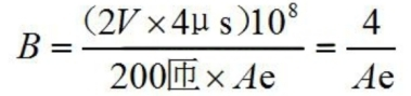 現在咱們來看磁芯,假定二極管是一般的一般的二極管,通態電壓大約為1V,電流為10A/200=50mA。互感器輸出電壓為1V,加上二極管的通態電壓1V,總電壓大約2V。250kHz頻率作業時,磁芯上的磁感應強度不會逾越