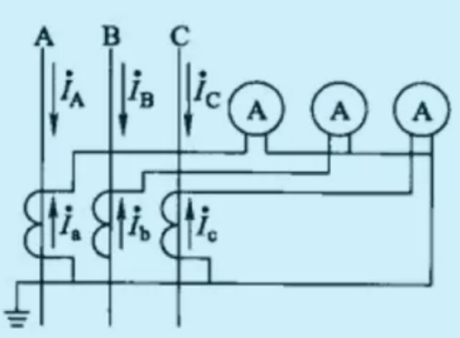 圖4是三臺電流互感器星形接線計劃,適用于三相四線制系統檢測電流和功率,可保護任何辦法的故障。